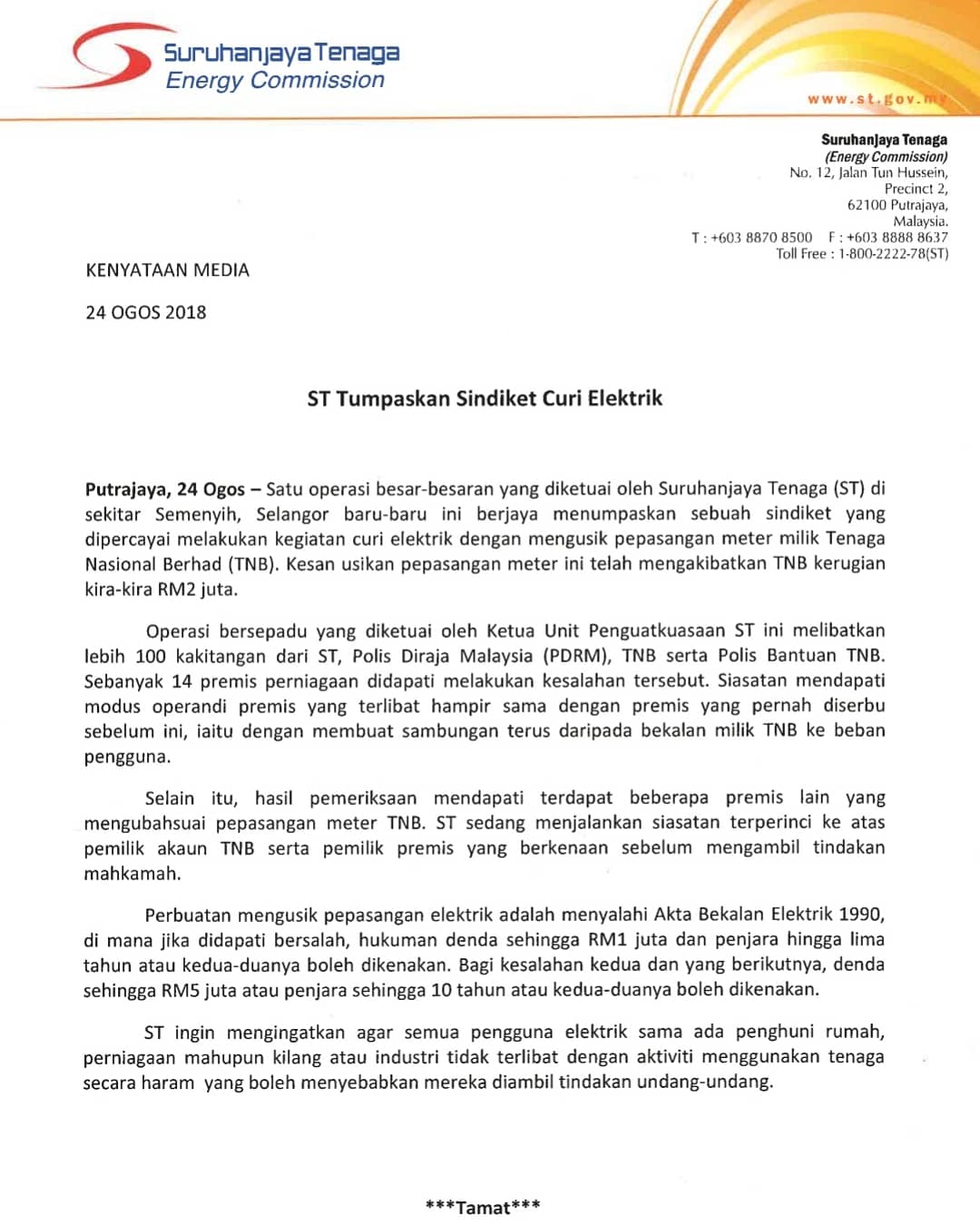 Twitter 上的 Suruhanjaya Tenaga Kenyataan Media St Tumpaskan Sindiket Curi Elektrik Suruhanjayatenaga Jadilahbijaktenaga Energycommission Beenergysmart Https T Co 2msjgdsgld Twitter